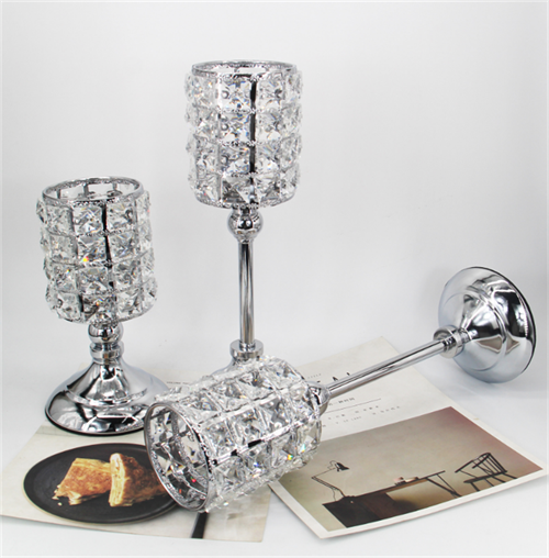• Wholesale Price Iron Crystal Candle Cup Silver Colored Party Wedding Decoration Table Centerpiece Candle Stand